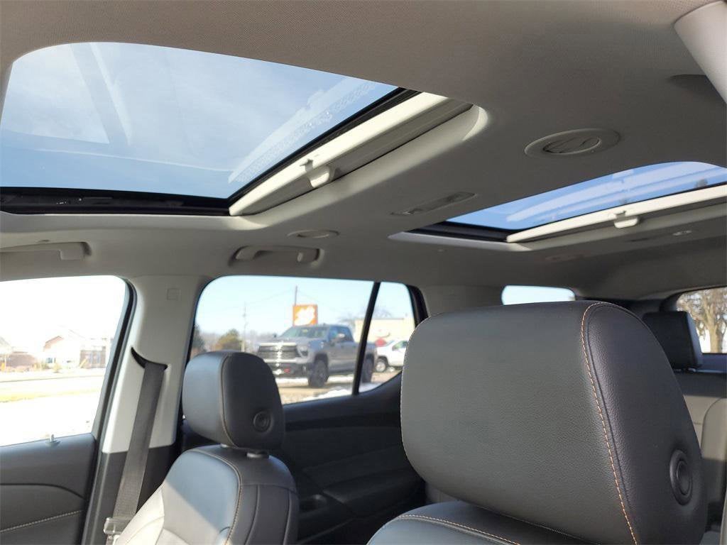 FREE 2 year/30k mile maintenance!!Clean CARFAX.17/25 City/Highway MPG AWD, 10 Speakers, 1st & 2nd Row All-Weather Floor Liner (LPO), 3rd Row All-Weather Floor Liner (LPO), 3rd row seats: split-bench, 4-Wheel Disc Brakes, 7-Passenger Seating (2-2-3 Seating Configuration), ABS brakes, Air Conditioning, Alloy wheels, AM/FM radio: SiriusXM with 360L, Apple CarPlay/Android Auto, Auto High-beam Headlights, Auto-dimming Rear-View mirror, Automatic temperature control, Bose Premium 10-Speaker Audio System Feature, Brake assist, Bumpers: body-color, Compass, Delay-off headlights, Driver door bin, Driver vanity mirror, Dual front impact airbags, Dual front side impact airbags, Dual SkyScape 2-Panel Power Sunroof, Electronic Stability Control, Emergency communication system: OnStar and Chevrolet connected services capable, Floor Liner Package (LPO), Four wheel independent suspension, Front anti-roll bar, Front Bucket Seats, Front Center Armrest, Front dual zone A/C, Front fog lights, Front reading lights, Fully automatic headlights, Garage door transmitter, Gloss Black Emblem Kit (LPO), Heated door mirrors, Heated front seats, Heated steering wheel, Heavy-Duty Cooling System, High-Intensity Discharge Headlights, Hitch Guidance w/Hitch View, Illuminated entry, Integrated Cargo Liner (LPO), Lane Departure Warning System, Leather steering wheel, Leather-Appointed Seat Trim, Low tire pressure warning, Navigation System, Occupant sensing airbag, Outside temperature display, Overhead airbag, Overhead console, Panic alarm, Passenger door bin, Passenger vanity mirror, Power door mirrors, Power driver seat, Power Liftgate, Power passenger seat, Power steering, Power windows, Preferred Equipment Group 2LT, Premium audio system: Chevrolet MyLink, Radio data system, Radio: Chevrolet Infotainment 3 Premium System, Rear air conditioning, Rear anti-roll bar, Rear reading lights, Rear window defroster, Rear window wiper, Remote keyless entry, Roof rack: rails only, Security system, SiriusXM w/360L, Speed control, Speed-sensing steering, Spoiler, Steering wheel mounted audio controls, Tachometer, Telescoping steering wheel, Tilt steering wheel, Traction control, Trailering Assist Guidelines, Trailering Equipment, Trip computer, Turn signal indicator mirrors, Variably intermittent wipers, Voltmeter, Wheels: 20 Dark Android Painted Aluminum.AWD 9-Speed Automatic 3.6L V6 SIDI VVTAwards:* 2021 IIHS Top Safety Pick with optional front crash prevention and specific headlightsStop By Today Test drive this must-see, must-drive, must-own beauty today at Graff Chevrolet, 1748 West Grand River Ave, Okemos, MI 48805. CALL TRICIA TODAY FOR A TEST DRIVE @ 517-827-5018 OR TEXT ME @ 517-896-9939.